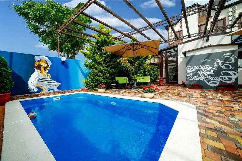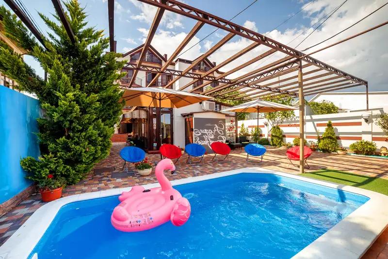 На территории гостевого дома «Волна» вы найдете бассейн с подогревом, уютное кафе-столовую с домашней кухней и зону отдыха с мангалом. Все это создано для того, чтобы ваш отдых был максимально приятным и запоминающимся.
